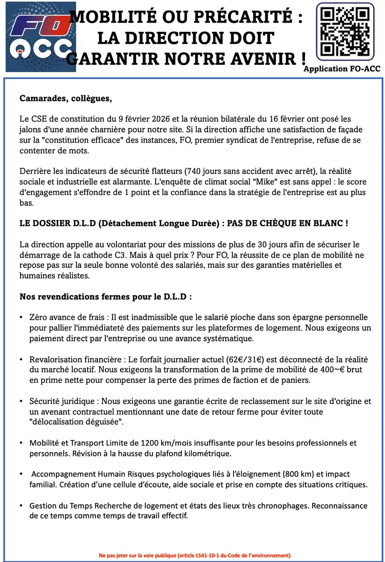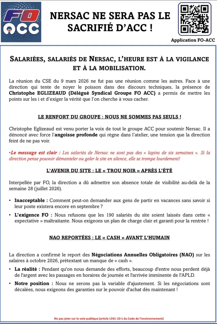 FO ACC à l'honneur de vous présenter sa liste dynamique ambitieuse pour vous défendre au quotidien sur Nersac: