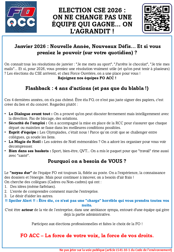 Tract: ELECTION CSE 2026 : ON NE CHANGE PAS UNE ÉQUIPE QUI GAGNE... ON L'AGRANDIT !